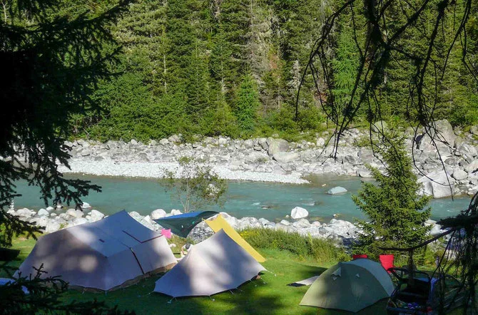 About 2,000 meters up in the Swiss Alps, Arolla is a spacious site composed of grassy terraced pitches. It is the highest campsite in Europe. Located near the Matterhorn, it’s a good spot for both challenging climbs and easier walking routes. Features fantastic views of the 4,000-meter north face of Mont Collon and the Pigne d’Arolla.