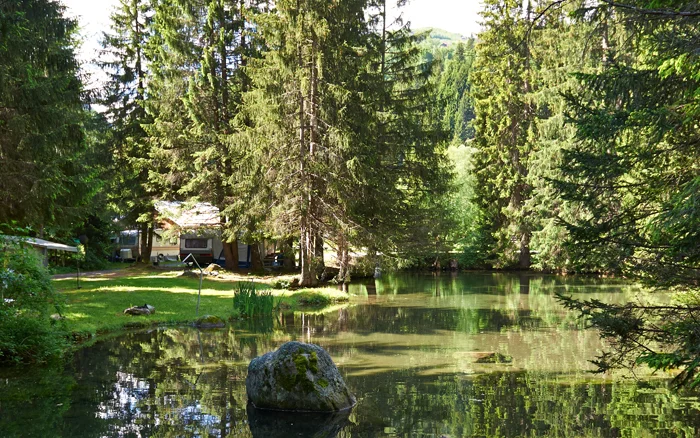 This campsite is located in an area with an impressive mountain backdrop and a natural lake in heart of the campsite. Plots feature natural mountain meadows, partly surrounded by the high-trunked spruce forest. Nearby are many opportunities for outdoor activities and adventure in the surrounding mountains.